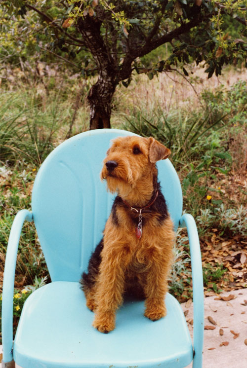 Here is a picture of Nigel on a lawn chair. He is a Welsh Terrier.