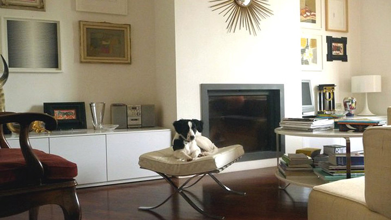Here is Lapo relaxing on the Barcelona ottoman in our living room.
