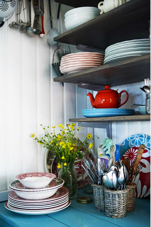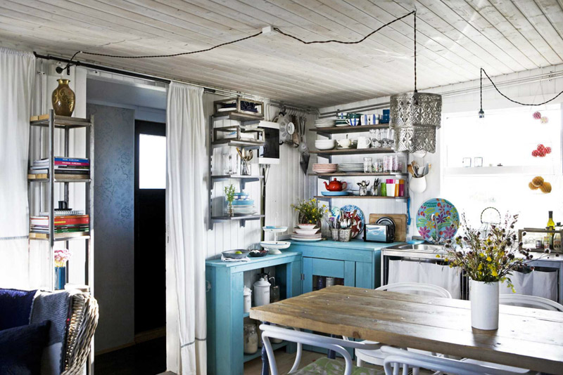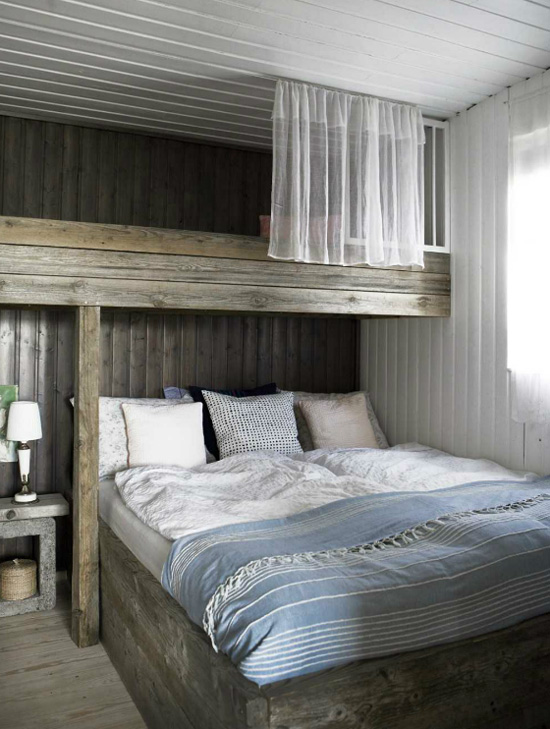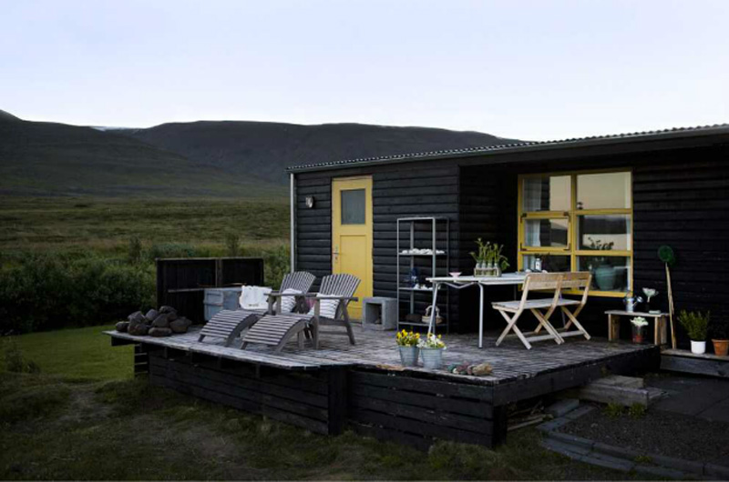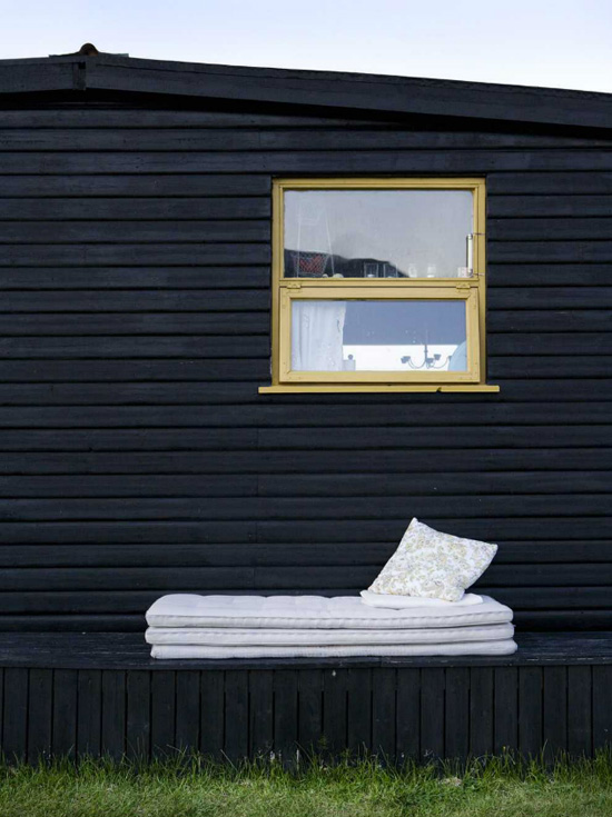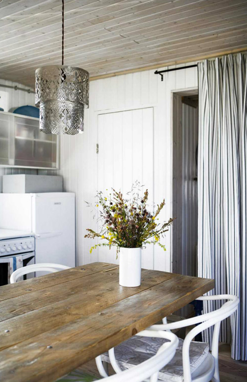 I am so stoked to have devoured the latest issue of Home & Delicious, created by Iceland’s powerhouse couple Gunnar Sverrisson (a photographer) and Halla Bára Gestsdóttir (a designer). I featured a couple of homes from their first issue here and here and I can’t wait to show you one from issue #2 (there are so many incredible homes featured I had a hard time deciding one one to blog). Magical photos and beautiful spaces, as I have come to expect from my new favourite online shelter magazine. This home is a 36 m2 cabin on a lake, build in the 70’s and moved from it’s original to current location in the 90’s, then extended and electricity added. The predominantly white/black/blue colour scheme and casual vibe is perfect for the rugged surroundings.