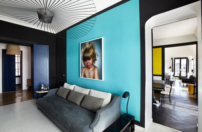 Here is another breathtaking project designed by interior designer Sarah Lavoine. It is pretty obvious that this Parisian apartment is the home of an art collector. Most people who design spaces for art collectors leave the walls white. NOT SARAH! She used teal, bright yellow and black – all perfectly suited for the spaces and the artwork they hold. Jaw-dropping results once again.