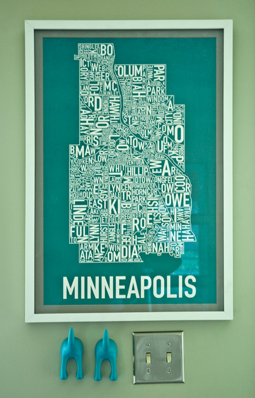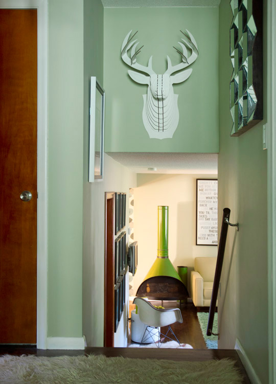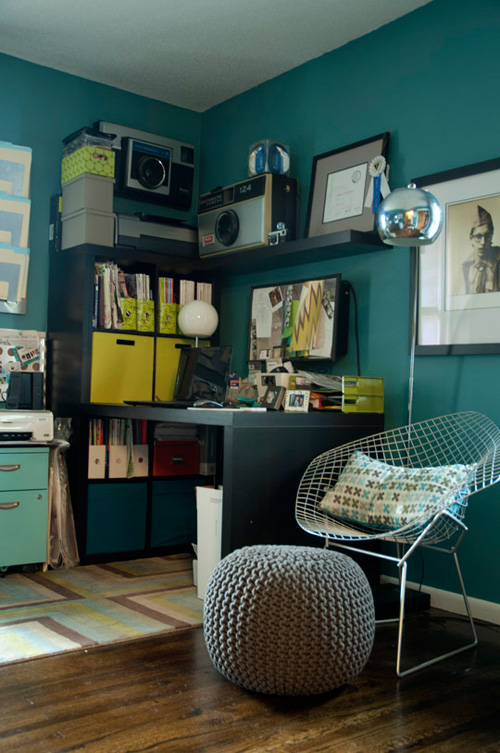 It seems Apartment Therapy is having a Room For Color 2012 contest, and photographer Janelle has entered her home. The tropical colour palette she went with in her new home began with her obsession with the colour aqua (and moved into mustard, grey and lime), and the purchase of the Dandelion Clocks wallpaper by Sanderson for the dining room. Beautiful bold but soothing colours. LOVE! Also loving her MASSIVE vintage camera collection…and she clearly loves her pooch. 🙂 You can vote for Janelle here (if you don’t want to create an account with AT you can sign in with Facebook).