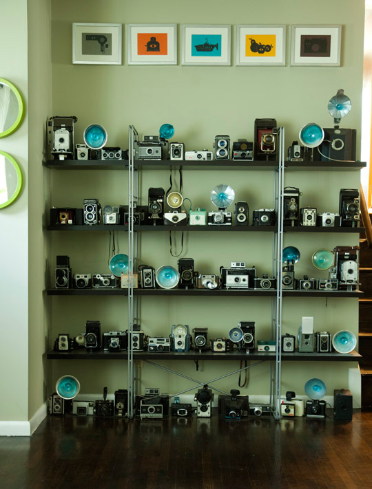 This is a great house. It feels like a "real" house, one that someone actually lives in. I am in love with that camera collection! And the color scheme.