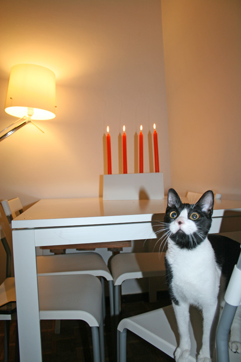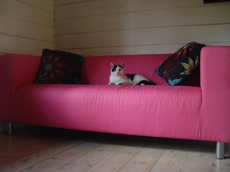 This is Kiku, the most arrogant cat in the world although we saved his life (we found him in the middle of a big crossroads in the centre of Warsaw). The colour of the couch was chosen by our 3 year old daughter.