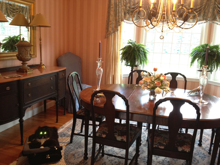 Here is Moco (again) by our entryway on her beloved Mobler chairs.
