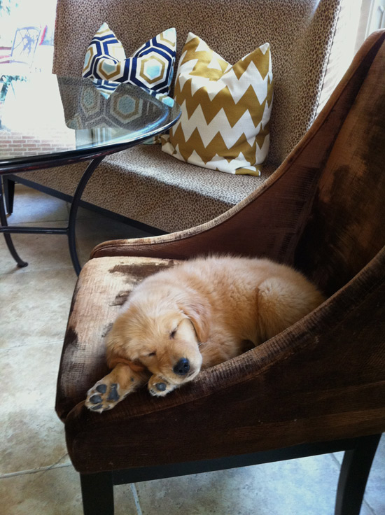 Siggy, our Golden Retriever puppy, found a chair just her size & color at our kitchen table.
