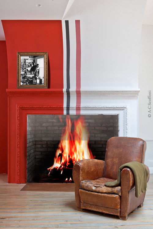 WACKO, and wonderful! So much personality and color! But what is happening in the fireplace image?? It's such a cool paint job…but I'm confused…is the fire photoshopped? Or even the whole color on the right side? Oh well, love it!
