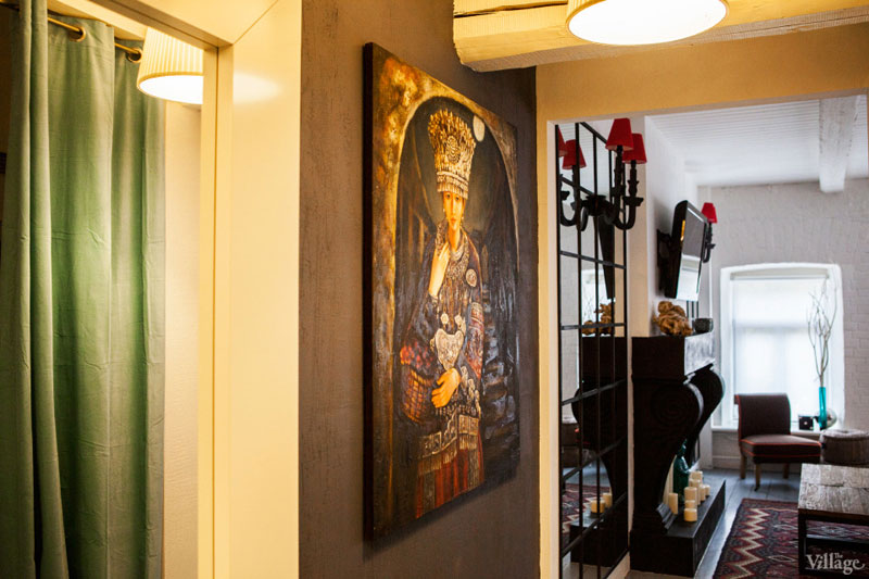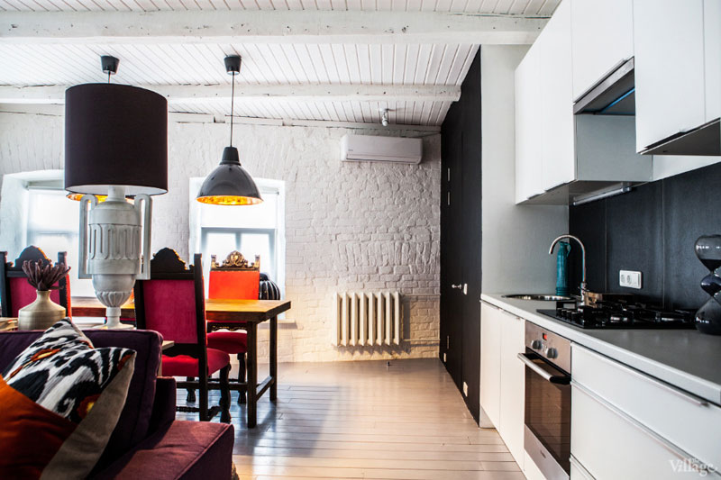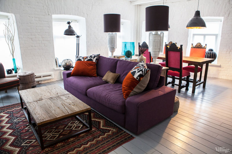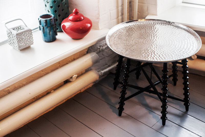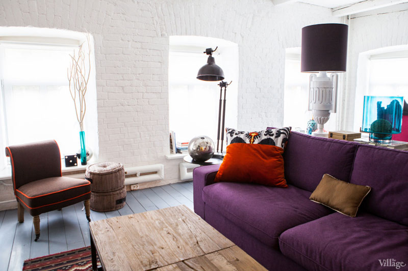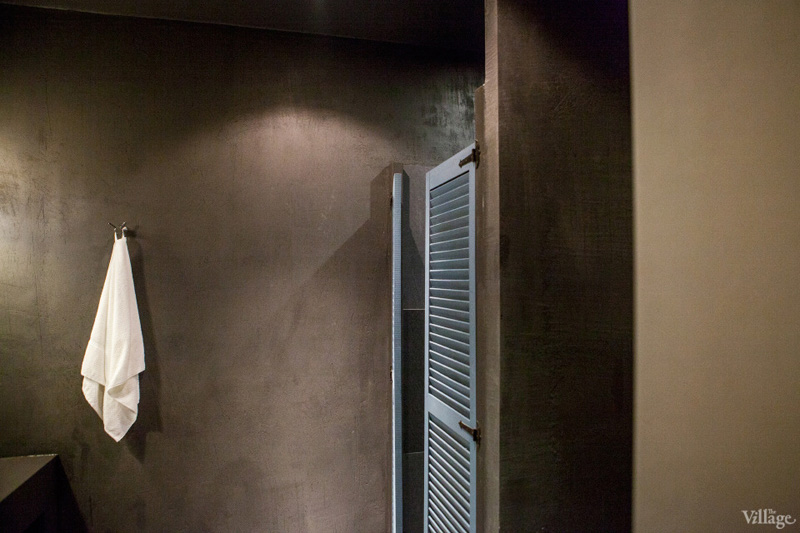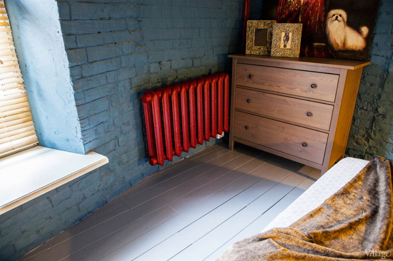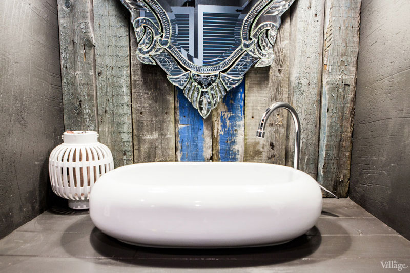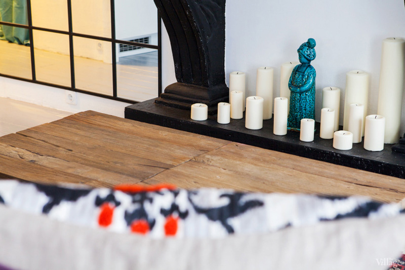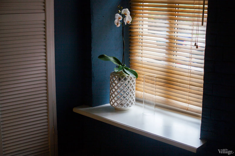 I found this this one-bedroom Moscow apartment on The Village and fell in love. The owners are clearly designers/decorators as it is SO well executed. This is a perfect example of how to use dark colours and large-scale items in a small space for high impact but without making it feel cramped. Several pieces are from Ikea (including the pendants over the dining table with a personal touch of copper leaf on the underside) and many from the couple’s travels. I adore everything – especially the large paned mirrors on either side of the mantel, the massive table lamps that delineate the living from dining spaces, the gorgeous blue bedroom walls, and the Venetian mirror mounted on old fence boards.