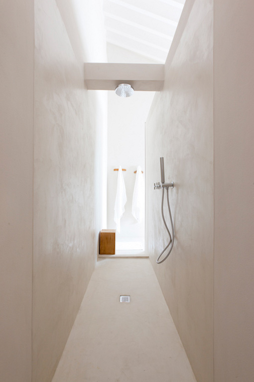 Is that the shower behind the bed? I love that idea, also when it's done with a tub. One room for all those relaxing, private moments.