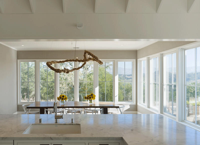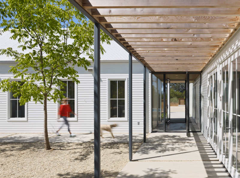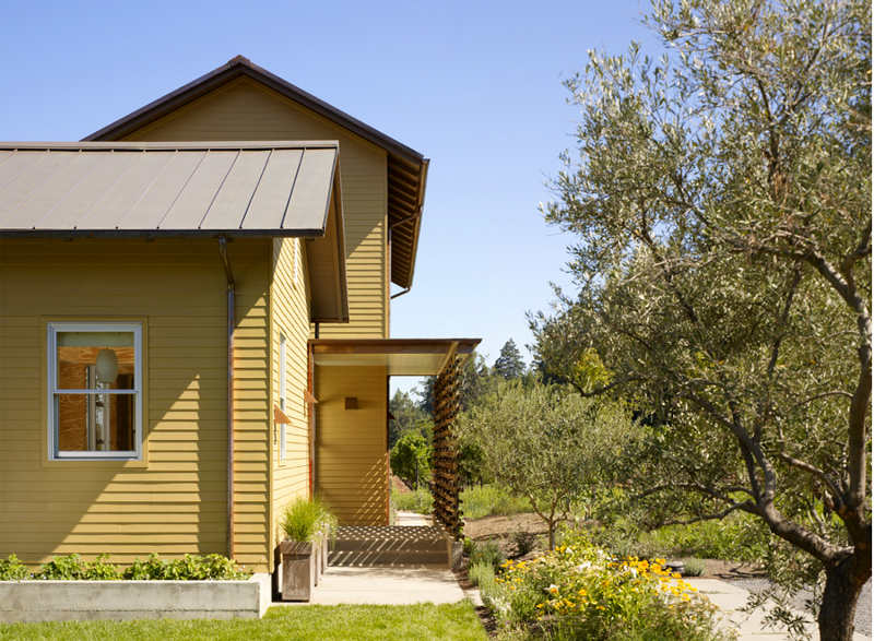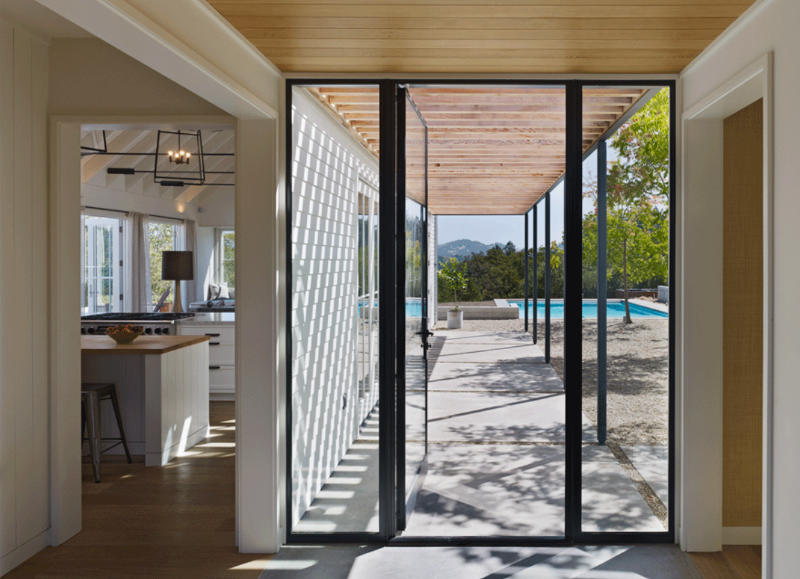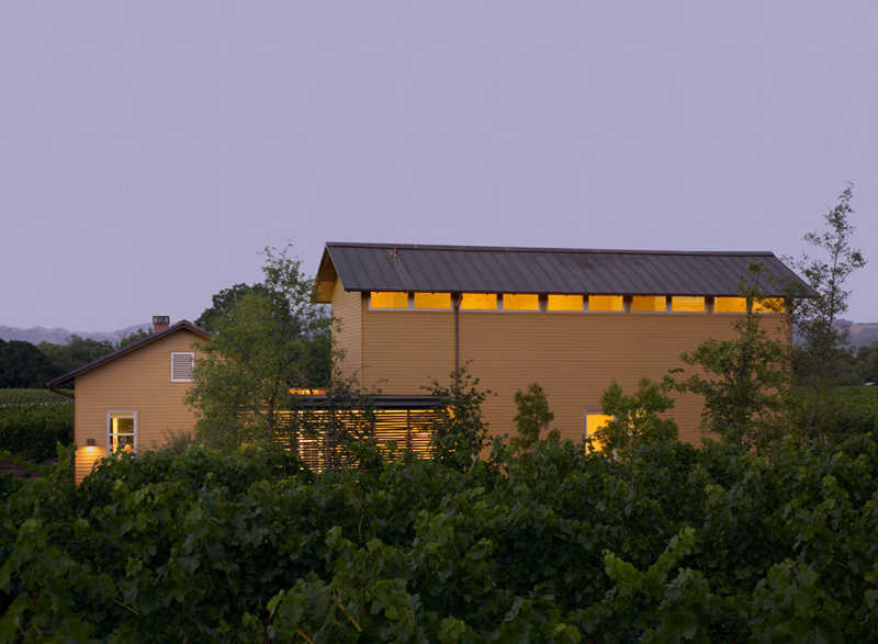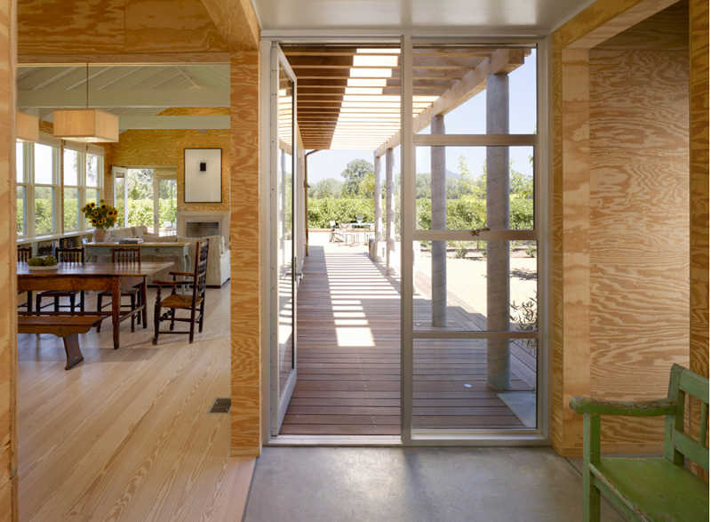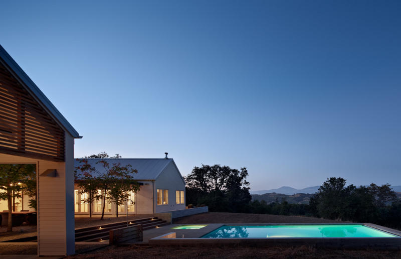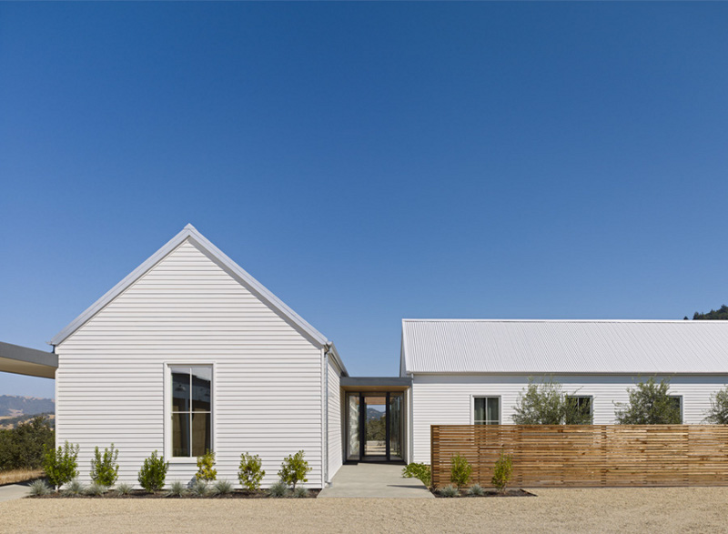 West Coast USA, San Francisco, a Bay Region vibe. Two homes from SF based Nick Noyes Architecture. Two homes that sit lightly on the land, a series of wings and interconnections. Breezeways and outdoor spaces, simple, honest architecture with materials and construction on display. The first, on a vineyard, proud in its simple wall cladding of plywood. The second a series of classic metal roofed “boxes” resplendent in white.