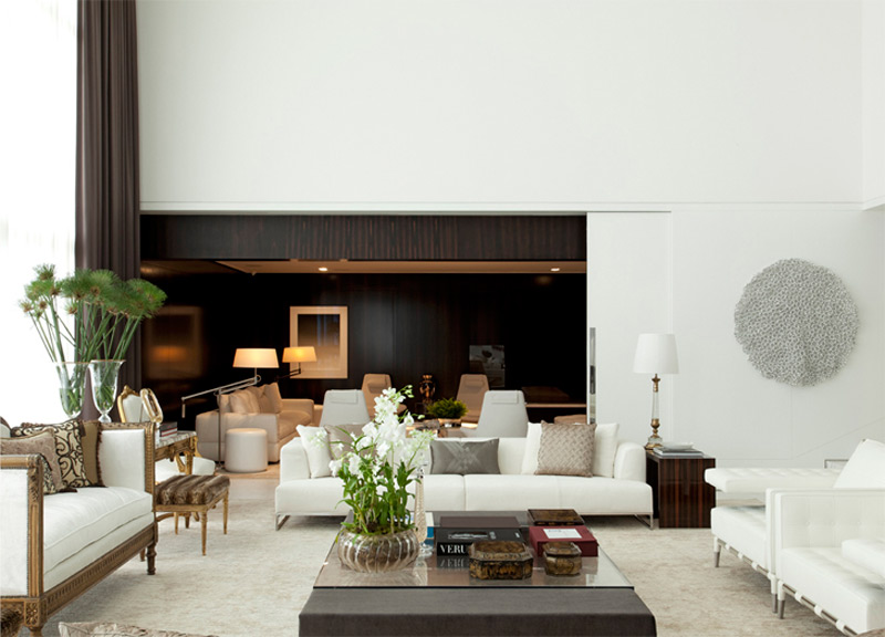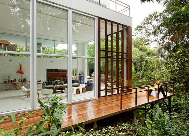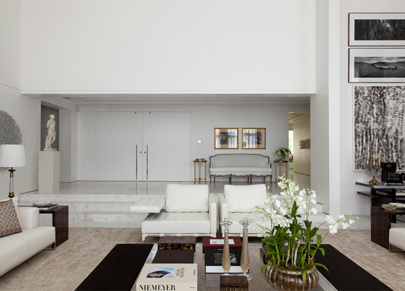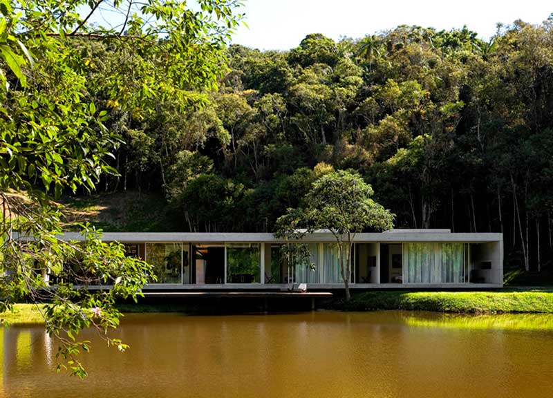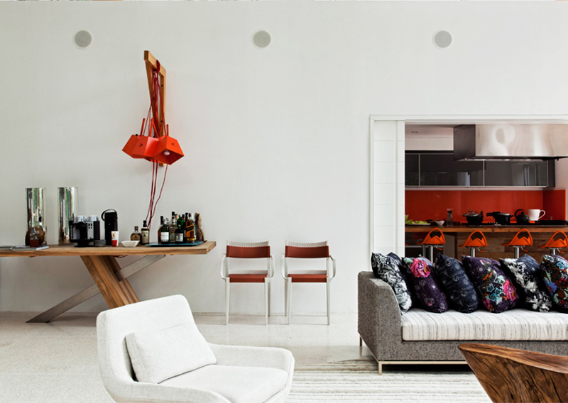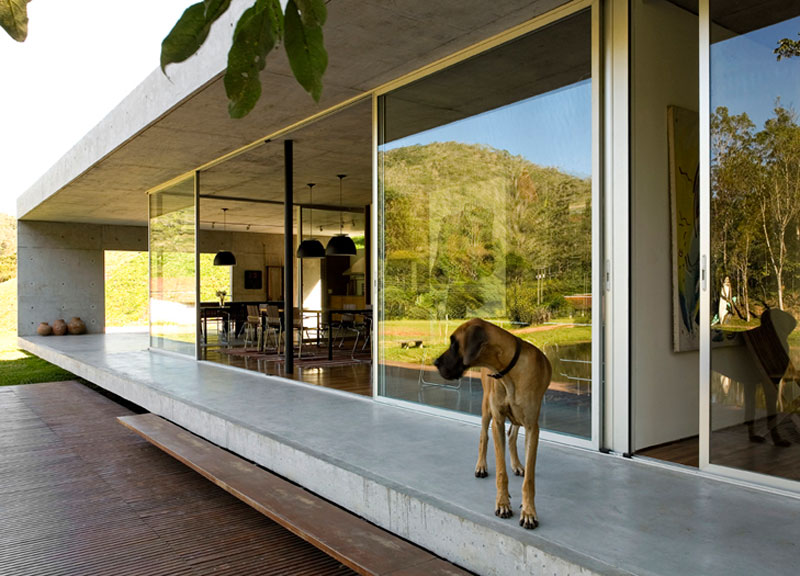 Oi ! (No hablamos espanol en Brasil… ) Concrete and glass, surrounded by tropical vegetation, always lots of white walls, a mix of natural materials (look at that wood table) contemporary furniture+ ethnic sculptures + some antiques and old stuff. This mix is so Brazilian ! Love your blog girls !