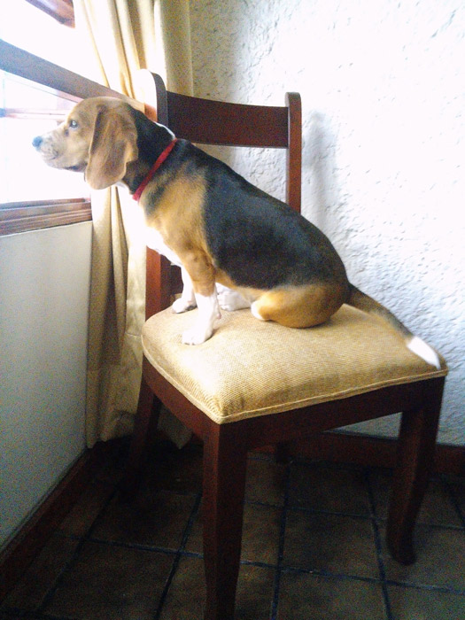 This is Lola, my beagle of eleven months old, she loves to sit in this chair, made by artisans in Tlacotalpan Mexico and watch by the window neighborhood.