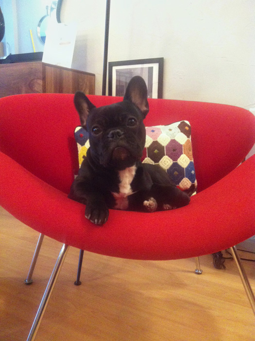 this is my sweet little Dante, an italian greyhound pup. He loves good design and sunbathing on his favourite Bertoia.