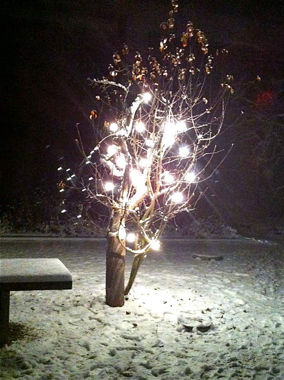The mercury is expected to rise to 41 C today in my home town. (That’s actual not apparent.) A sweltering hot day. Just a few more weeks till Christmas! Thank goodness Swedish stylist and creative director Mikael Beckman has sent me his latest Christmas styling for Svenskt Tenn. Makes me dream of cold climes, open fires and snow. He even sent me a photo of his Christmas tree – an old apple tree in his front yard. Now if I could combine my heatwave 41 C and Mikael’s frigid 15 C below we would have a balmy 26. Now that’s just perfect!