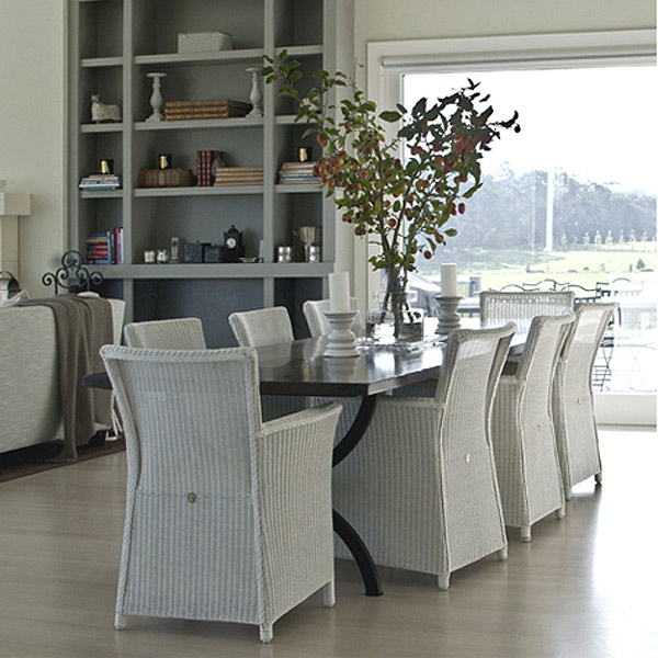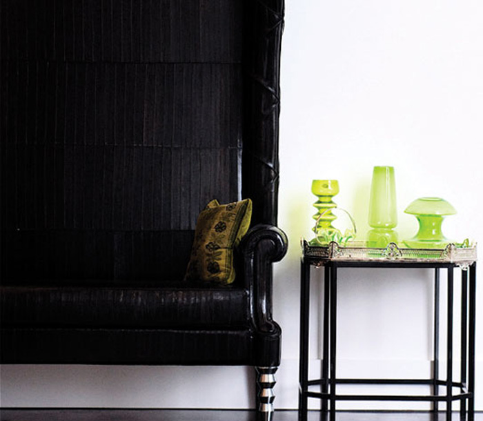I seem to be posting alot of Scandinavian design lately so I’m trying to mix things up a bit and keep you all visually stimulated with all kinds of room porn. I came across the portfolio of New Zealand interior designer Bridget Foley and was intrigued by her style. Effortlessly cool and casual. I love so many pieces – the chairs above, the leopard print ottoman/coffee table, the stunning cloche-shaped chandelier, that insane high-back bench/loveseat, the black leather chesterfield…but I’d be happy with just that wall of kitchen storage. *sigh*