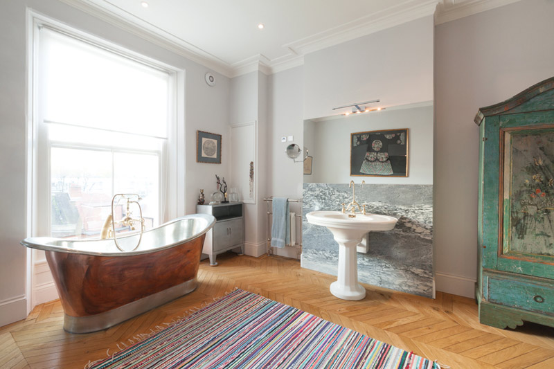Check out this stunning property, the latest on the roster of London estate agents Domus Nova. It’s a DREAM home – the architectural details, the high ceilings, the herringbone hardwood floors….