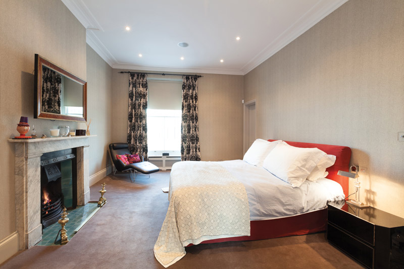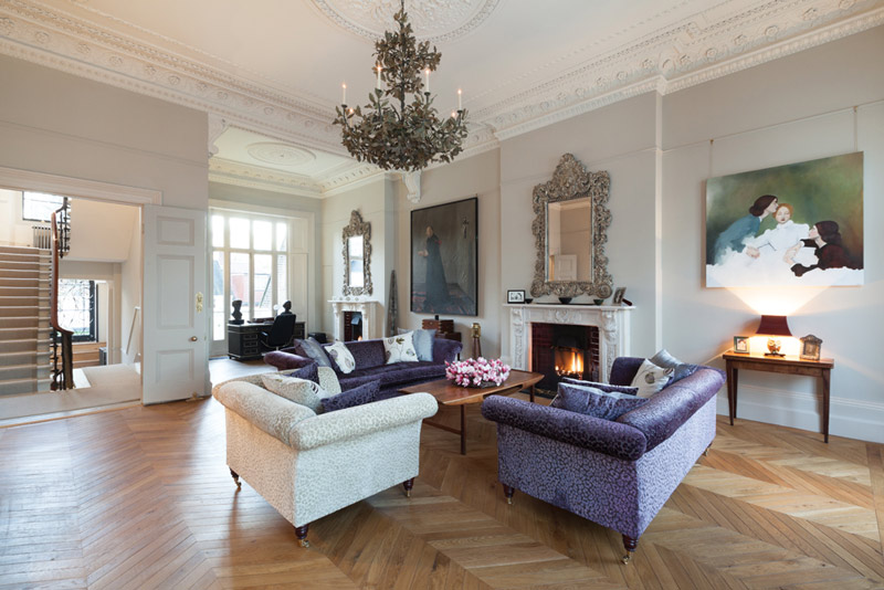 Leinster Gardens in Bayswater is the home of independent developer Ivo Hesmondhalgh who bought the building just three years ago. Looking for a complete change, the high ceilings and vast spaces of some of the rooms were what wooed his family and work began in ernest to restore the building to its former glory whilst finding a way to also create a very 21st Century home. The end result is a beautiful family home over four floors that has three bedroom suites and three further bedrooms, one of which is used as a teenagers lounge space. The open plan kitchen combines a sitting room and dining area with a more formal drawing room and dining room located elsewhere.