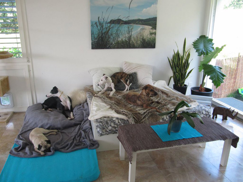 I received a pet entry from Annik that included so many photos of her pets – mostly rescued cats and dogs that she fosters – that I thought these animals needed their own post. Annik’s home is beautiful, and the animals she has saved look like they are living the easy-going life they finally deserve.