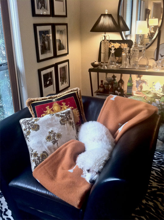 Saturday December 29th we lost peacefully at home our beloved Bichon Chris-Tina. 15 yrs old. Here she is Christmas morning on her favorite Hermes blanket. She will be missed.