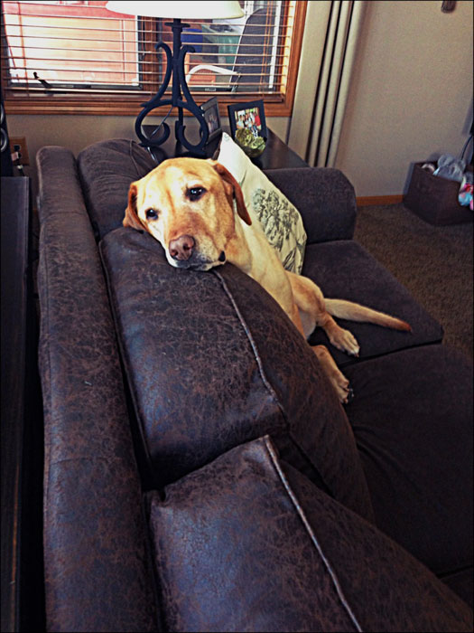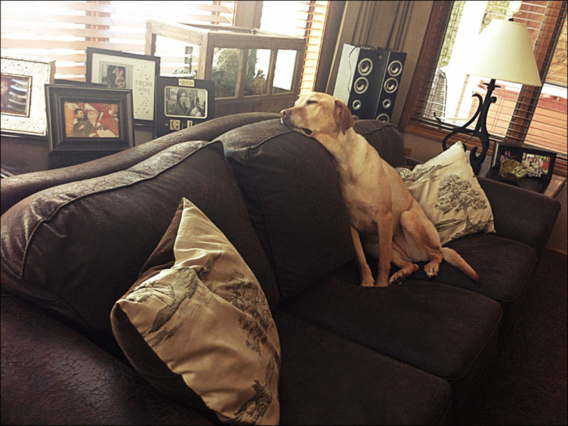 This is my sweet 8 yr old Maggie…..she spends every morning over looking her backyard on the comfy La-Z-Boy Sofa