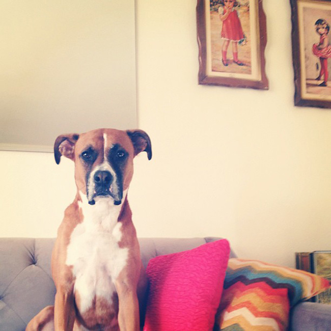 Here are two photos of my beautiful Boxer Mix, Daisy. 6 years old from Saint Louis. She always looks so regal to me.