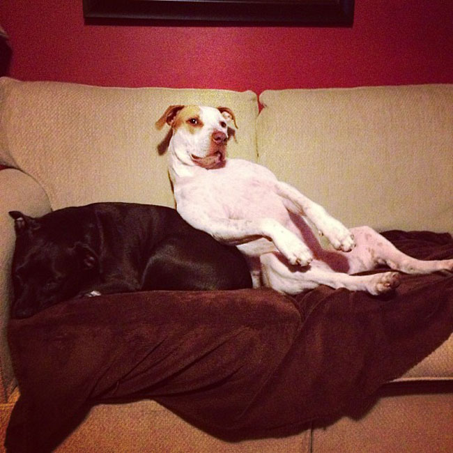 These are my dogs, Penny (white one) and Lady (black one) sitting on their favorite couch. I know there’s a blanket on the couch, but the couch is very appreciative that it is!