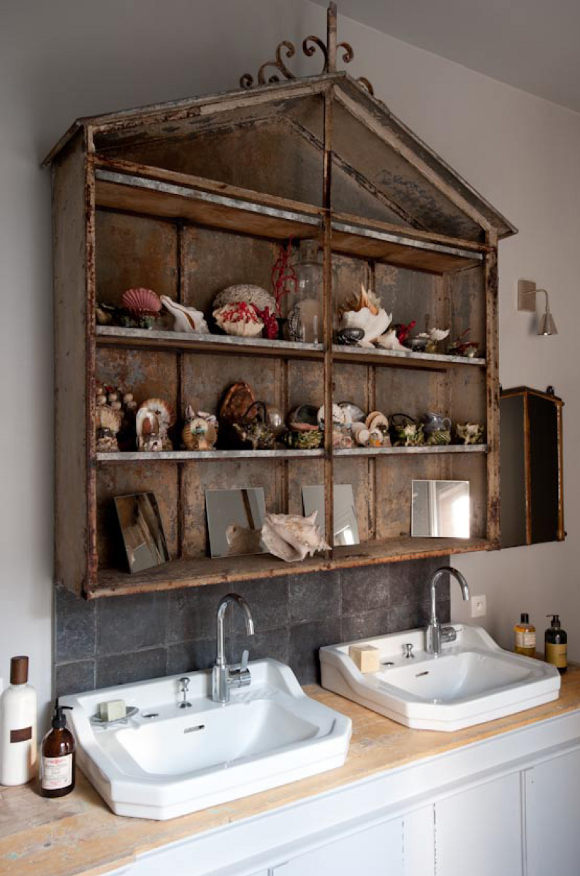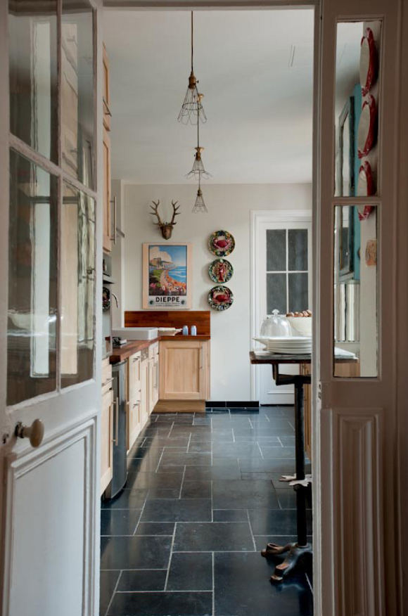 Once upon a time in the French city of Dieppe there was a house. The house of a collector, a traveller, an artist. A house of exposed brick, dusty pinks and blues, of quirky collections, imperfection, the souvenirs of life and a dash of fantasy. A house decorated by Elodie Sire of d.mesure. Can’t make up my mind if I like the kitchen better than the bathroom. Maybe both?