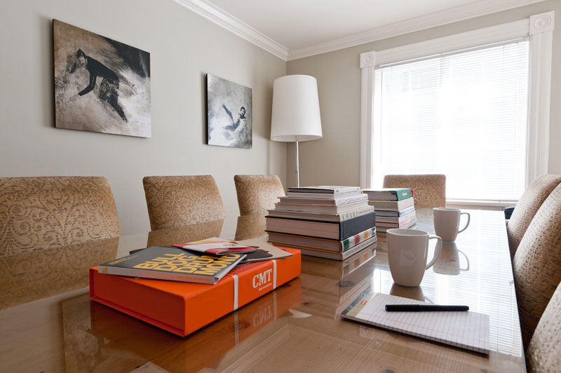 Loving this office of San Diego innovation and design consultancy firm Bulldog Drummond. Their Victorian house-turned-office space they have effectively titled ‘The Manor’ features a mix of traditional British design with a modern California twist. I love Brit-inspired design… the ubiquitous brown leather chesterfield and union jack pattern. Very cool yet still looks professional.