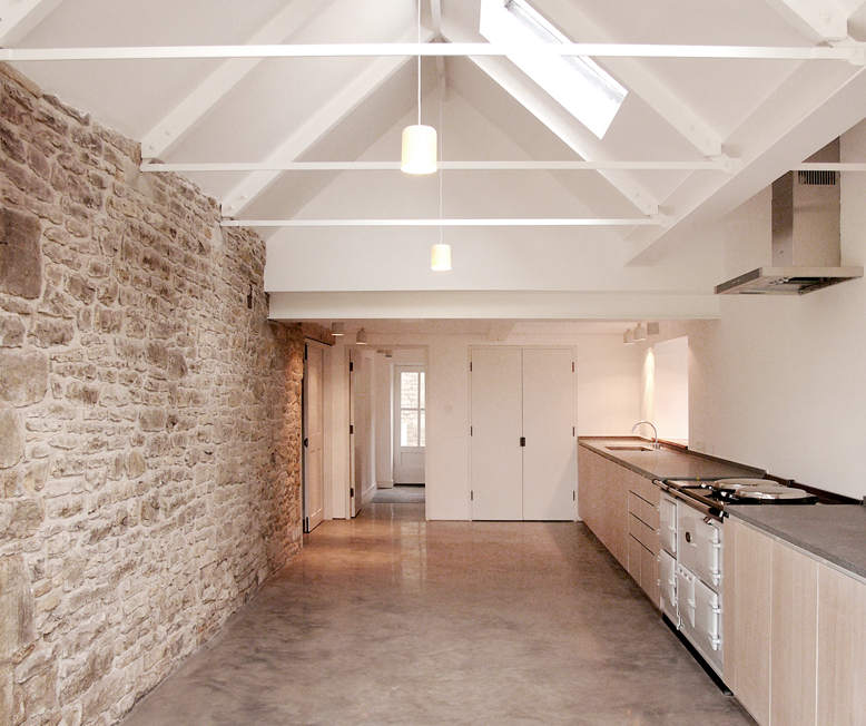 Pared back, elegant simplicity. Spaces stripped back to their inherent form. Beautiful, precise yet subtle. Feilden Fowles Architects deliver pure, conceptually strong buildings. The first , a renovation to a 1930’s apartment sees emphasis on symmetry where the dark walnut-lined central axis with sliding elements provides intimate pockets in an open plan design. stripped back to its inherent form. The second home, a Cotswold extension to a working farmhouse emphasises its simple, functional structure.