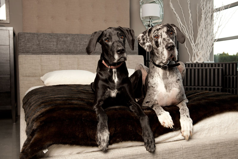 We are a furniture wholesaler from Vancouver, BC. Here are our “mascots” Zadie & Freckles on our Portia Bed.