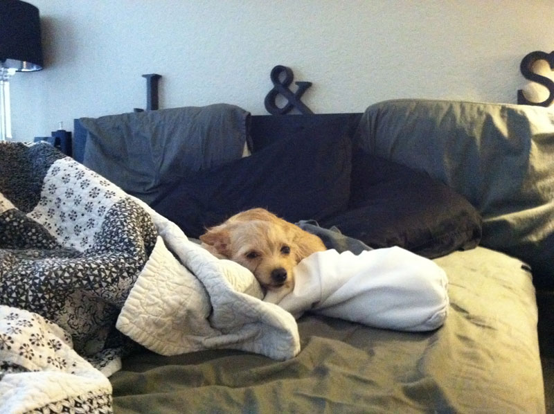 This is mini our beloved Chorkie (2) everytime I went to make our bed this morning I couldn’t because she was just too cute to move!