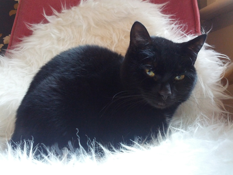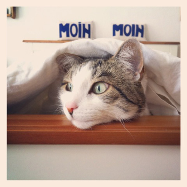 This is our 9-year-old European Shorthair Gandhi. He really likes cuddling up in our bed.