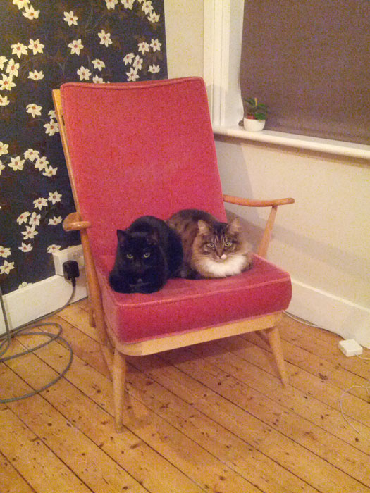 And the final pic shows both the boys in a rare moment cuddled up together on our new Ercol chair that we got on e-bay and needs a bit of a refurb, although all our cats seem to have claimed it for them.