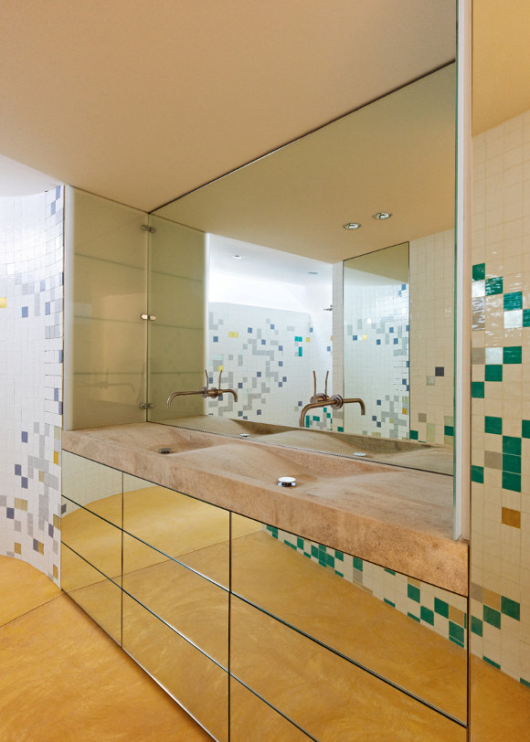 Way too many gimmicky design choices going on here for my taste. That bathroom is going to get very old very fast.
