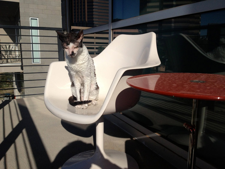 1. Gizmo enjoying some Phoenix morning sunshine on his favorite Saarinen Chair!