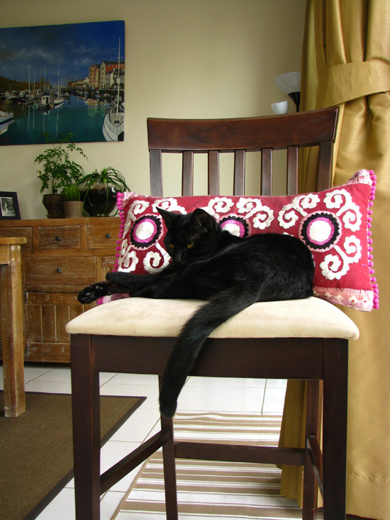 If you’d like to send me photos to include in next week’s “pets on furniture” post, please ensure your photos follow my basic rules: First, the pet must be on a piece of furniture. And said piece of furniture must be clearly visible in the photo, so it takes center stage rather than your pet. Think of it more of a photo of a great piece of furniture that you want to show off…and your pet happens to be sitting on it. And second, the photo must be of decent quality. If it’s dark or fuzzy then it may not make the cut. Photos, your name, location and a brief description can be sent to desiretoinspirekim@hotmail.comand PLEASE don’t send closeups of your pet! Thanks!