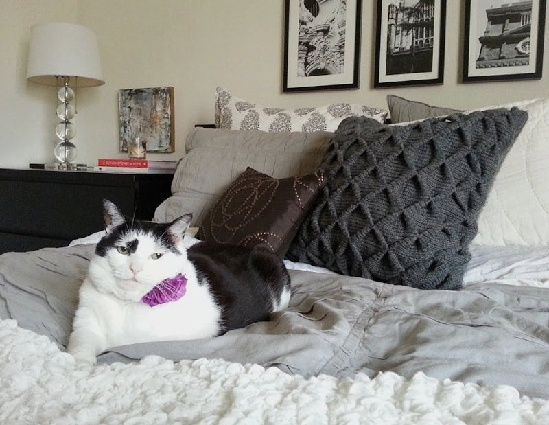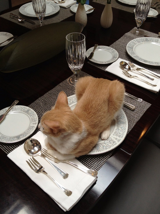 Love Martha Stewart on the dinner plate! Love Bella Jade lolling in bed, too. Cats rule.