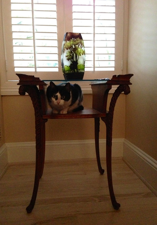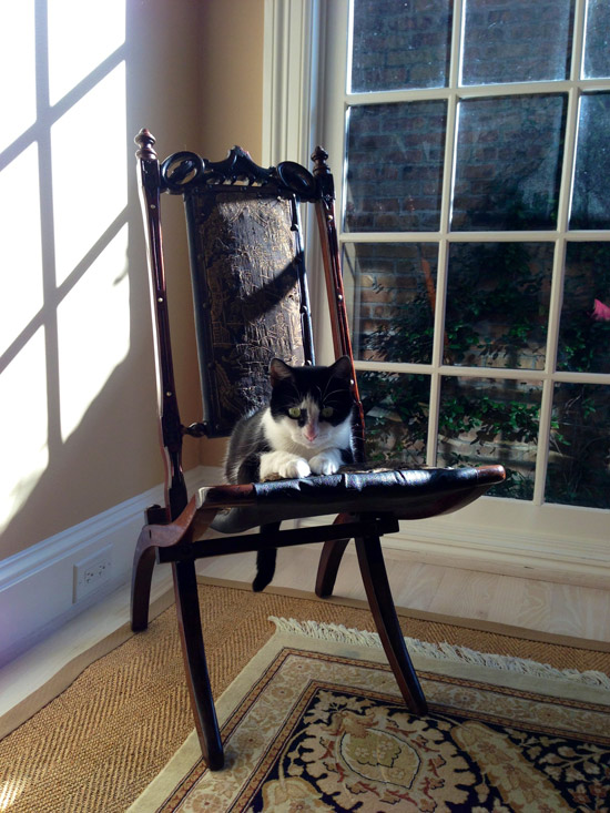 Cataleya is a kitten rescued by one of my design client’s, and appreciates fine antiques every bit as much as her owners. Here she is sunning on two of their collection, located in Houston’s River Oaks neighborhood.