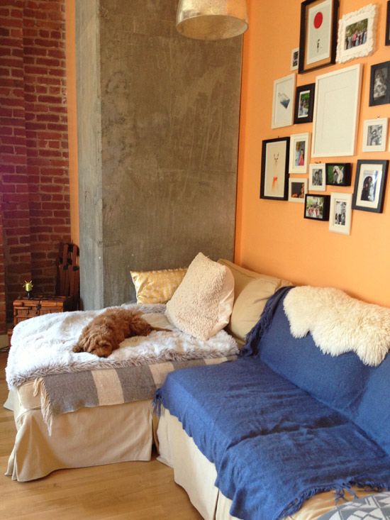This is Marcel sleeping on our couch with a fur blanket. what a hard life!