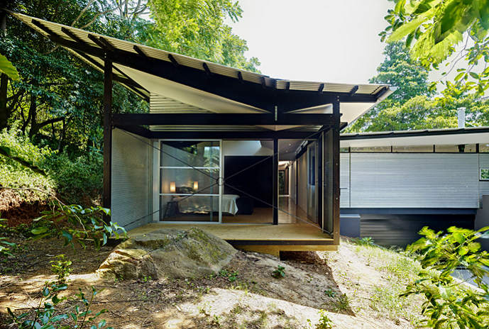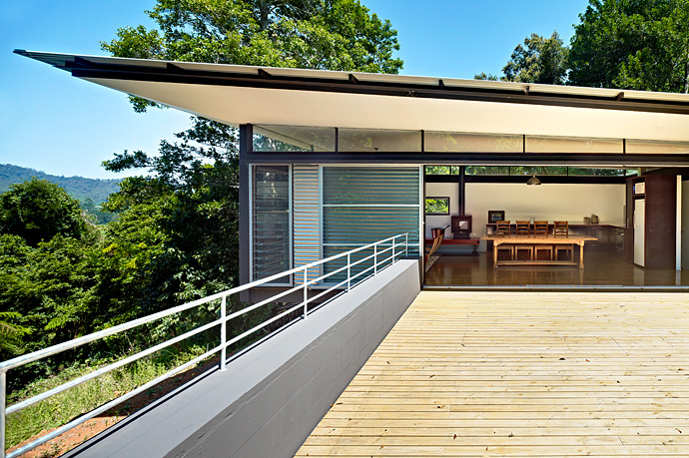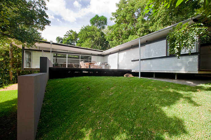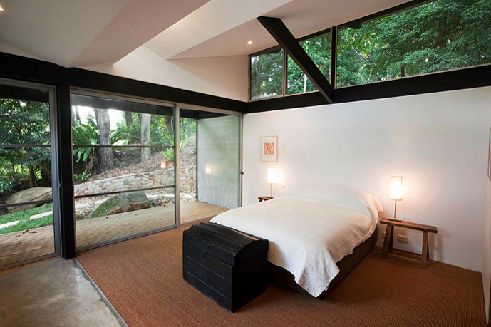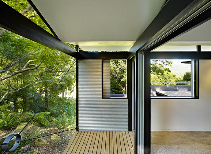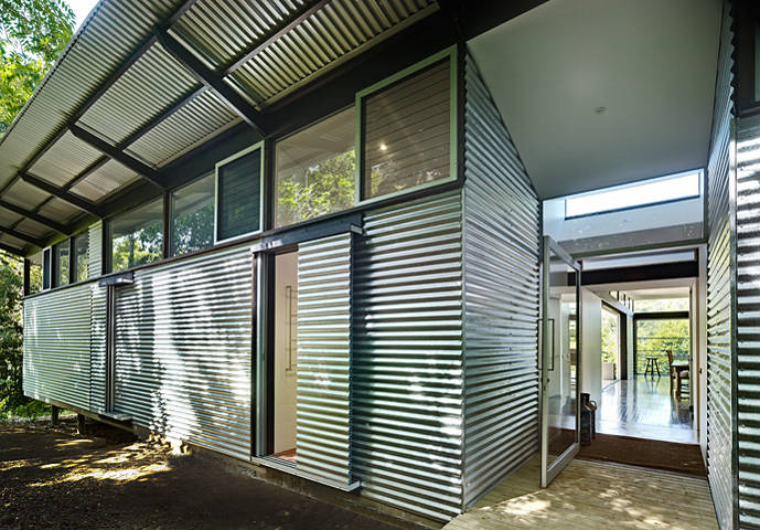 Like an insect with wings poised to lift off. A metal grasshopper coiled for action. Foxground House by Louise Nettleton Architects sits lightly on the site with a roof line that promises flight. Corrugated steel is the material of choice referencing the Australian history of the corrugated iron shed in the bush. Indoor and outdoor meet seamlessly in this stylish contemporary home.