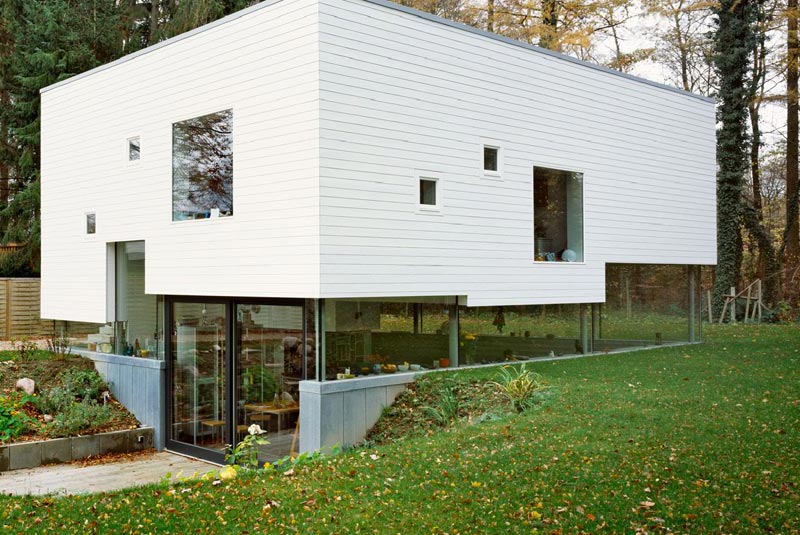 How cool is this house by German architecture firm Kraus Schönberg?! The lower level is open-concept and cut into the ground to create a sightline directly across the property so the views are all about the landscape. This is such a great idea if there are hieight restrictions that need to be respected. It allows the house to be lower than average but gives you an amazing amount of light even when partially underground. Simple yet so effective.