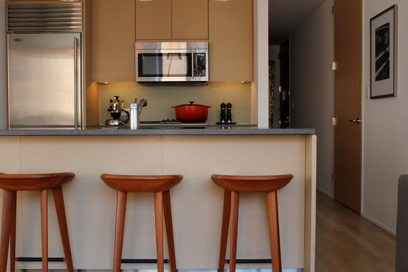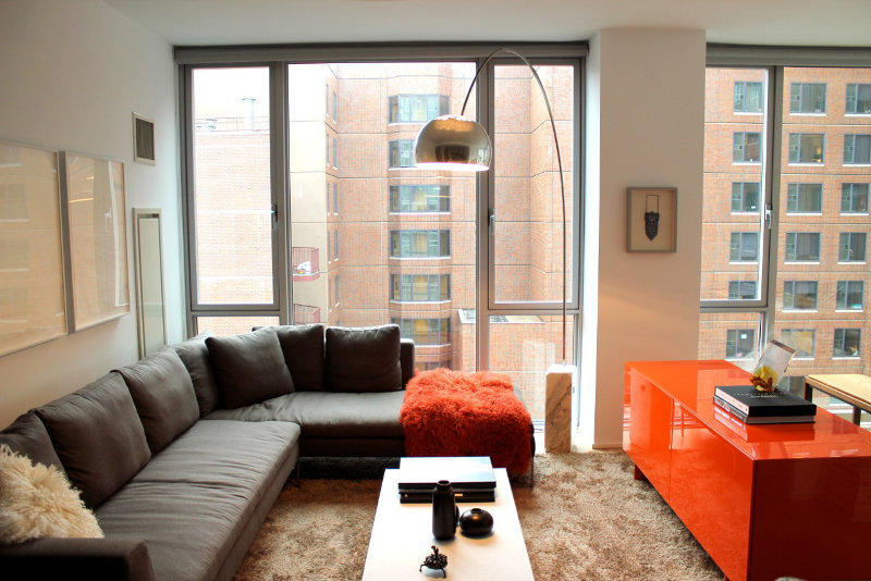 Perched above the streets of New York is the home of Irving Diaz-Burg. “The apartment is in a new construction, utilitarian high-rise building by Toll Brothers’ located at 110 Third Avenue, with floor to ceiling windows and amounts to a well-considered 850 square feet,” writes Irving who works in architecture as a Project Coordinator and Marketing Manager. It’s not hard to see how Irving has honed his fabulous sense of style. “I have been working in high-end architecture and interiors for a number of years. I was an art history major with a practical background ranging from furniture specification, to whole event planning to assisting project managers on all levels of organization and project actualization. This has been a great outlet for my creativity, organizational and social skills…” What a wonderful contemporary apartment Irving! Super stylish living in the Big Apple. And for all the readers who will want to know what and where and how to get their hands on various pieces in the pictures you’ll find a comprehensive resource list here. You wouldn’t expect anything else from a Project Coordinator 😉