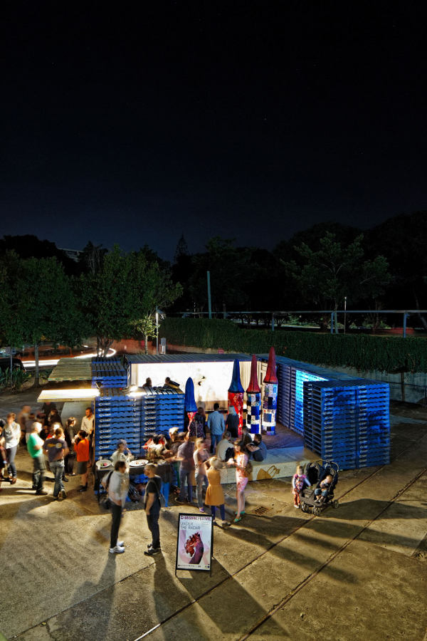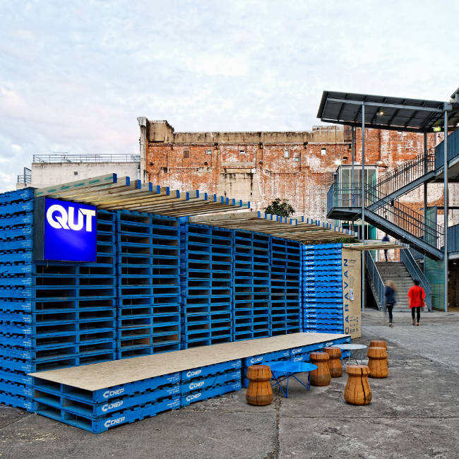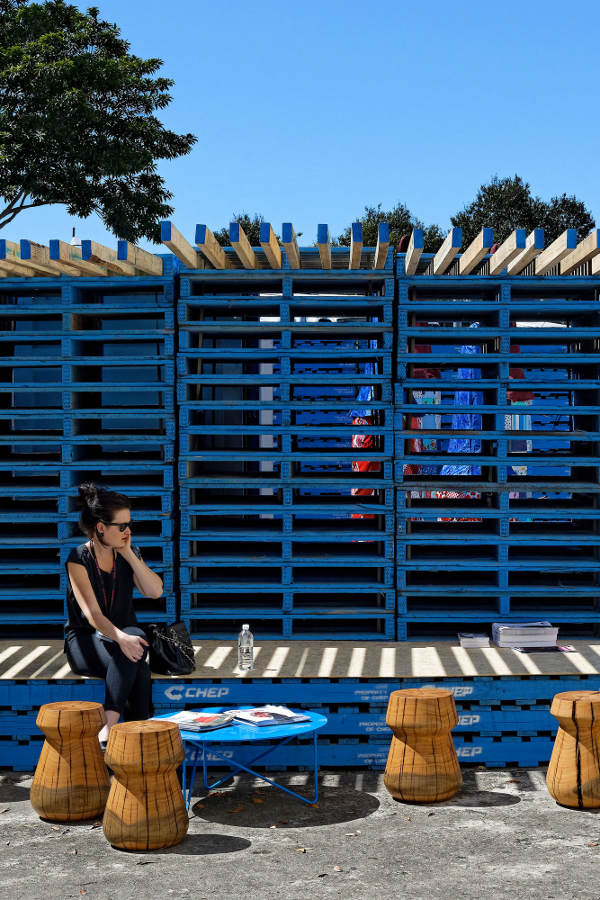 Shipping pallets and containers. An outdoors art space temporarily created for the 2012 Brisbane Festival.  A performance and exhibition space where the building materials were borrowed from sponsors and returned at the end of the festival. Now I’m not suggesting for you to “borrow” pallets to define spaces within your backyard but what a cool idea. Designed by Brisbane architects A-CH (Atelier Chen Hung).