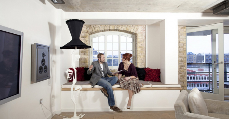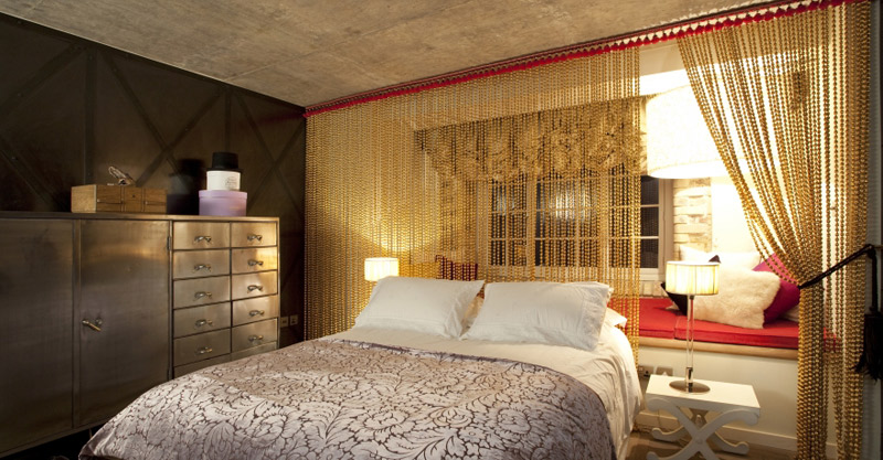 Increation is an interior design firm based in London that specializes in kitchen and bathroom designs. I was poking around their website and came across a couple of great projects. This first one is the conversion of a Victorian mill for Kate and Shon. Ex cheetah handler, Kate, was determined to create her dream home from within the Old Street flat. Emphasising her own personality, she was looking to create in each of her rooms unusually different spaces that were to leave her with a sense of feeling both comfortable and wowed. Entertaining lay at the heart of this project, there being a clear brief for an open cooking space to allow for bottle opening and nibbling to happen comfortably. In addition, a cosy guest bedroom and second bathroom were to be created. Crafting her a stunning island as the feature of the space, which allowed for cocktails to be enjoyed at one end while cooking happened at the other. The carefully planned curved wall in the bathroom, with floor to ceiling tiles, creates a feeling of complete indulgence for those long soaks in the bath which Kate loves. For Shon, however, we created the perfect walk-in shower that has dark tiles and gentle lighting that allowed him to wake up softly in the mornings. I’m totally smitten with all the exposed brick. And that is one creative and funky kitchen!
