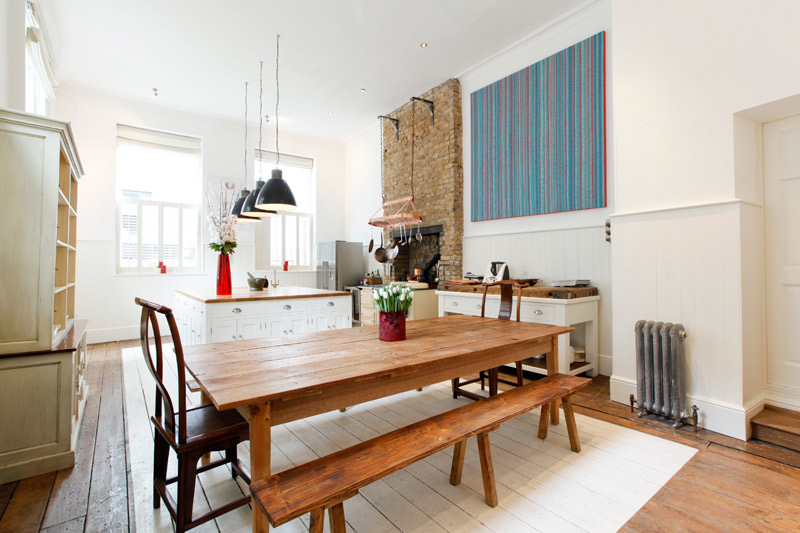 Have a look at this cool home for sale in London. It’s called The Clock House and is the former yard office for the long defunct Cannon Brewery, what used to be one of East London’s largest independent breweries. The brewery fell into disuse about 20 years ago and was converted into a residential home about five years ago. The current owner completed his renovations recently but is now keen to sink his teeth into a new project. The Clock House is a truly unique building – the clock on the tower still works. Now the decor is unfortunately nothing to get excited about but imagine the possibilities! I do love the kitchen – especially the large white painted rectangle on the hardwood floor. It’s like a massive washable rug. 🙂 (listed with Currell Residential)
