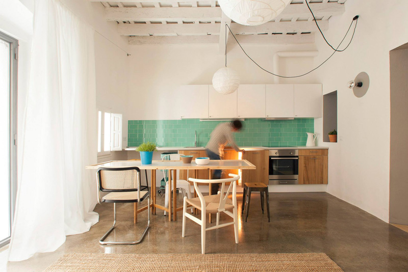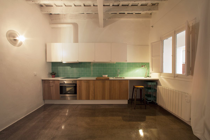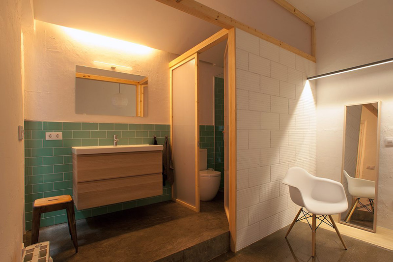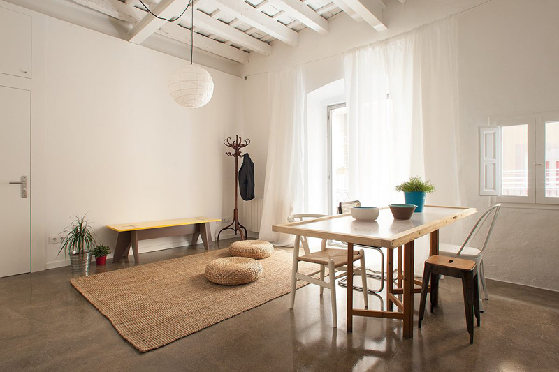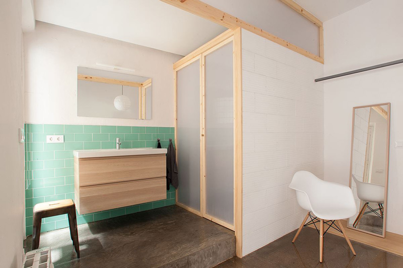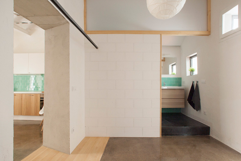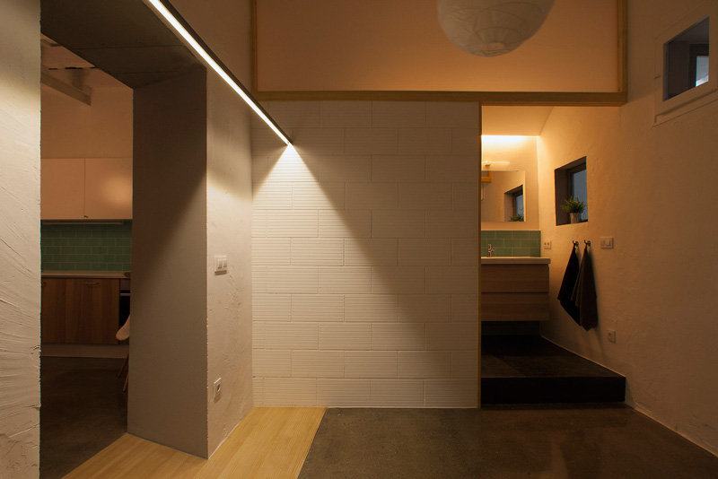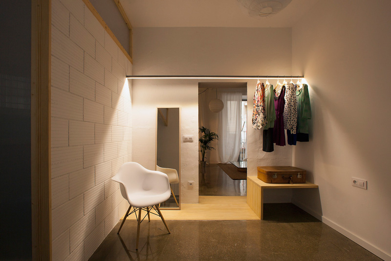 Sometimes I crave simplicity. My life is pretty much non-stop work and the idea of coming home to a simple, raw, calm minimalist space really appeals to me. Of course, this will never ever happen but I can look at spaces and dream that I can live without stuff. Like this apartment by Barcelona’s Nook Architects. LOVE the lighting/clothes rail strips, and the sections of hardwood flooring amidst the concrete (particularly when it joins into a bench).