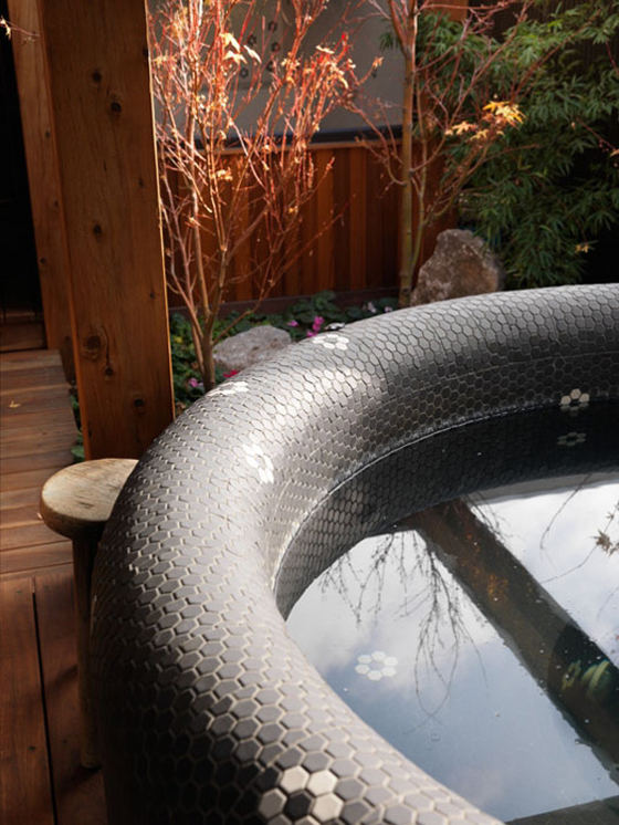 It may be winter in my part of the world and the whole idea of bathing Japanese style in this indoor outdoor bathroom is just a little too challenging but as soon as Spring rolled round (temperature and leaves on the trees) you couldn’t keep me out! By b.e. architecture.