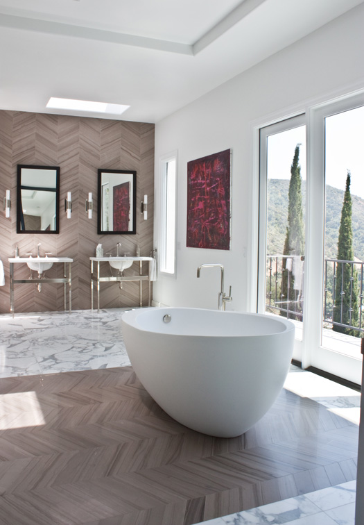 I’m a fan of this classy home designed by Los Angeles based interior designer Wendy Haworth – particularly the bookcases with built-in seating for cozy reading/napping. Wendy creates custom interiors with a collected feel that reflect the personality/vision of her clients. She travels the globe to seek out furniture and accessories and assembles collections of unique pieces for her projects. Before turning to interior design, Wendy worked for Vogue and Elle magazine as a photo editor where she honed her eye for all things beautiful.