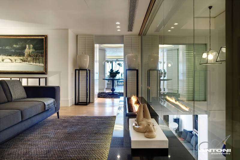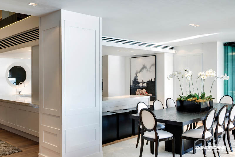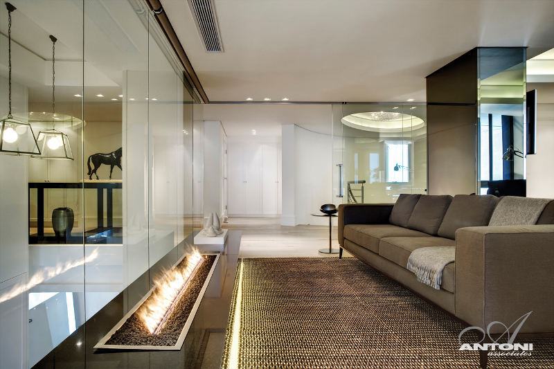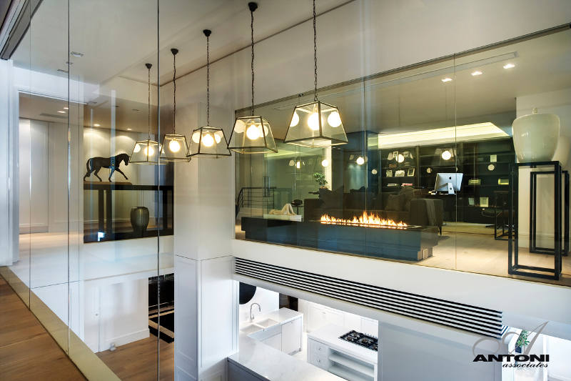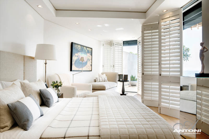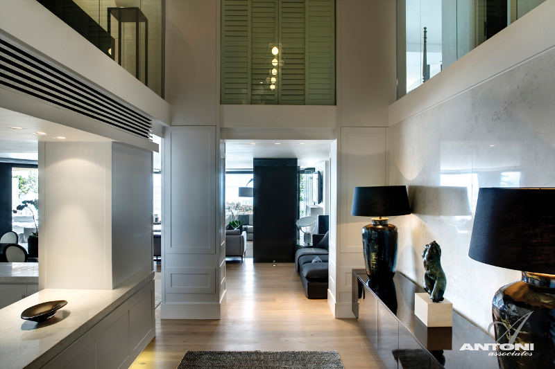 Beachside living has never been so glamorous. ANTONI ASSOCIATES, the Interior Design and Décor division of the South African architectural firm SAOTA, have created a white and white interior that is sophisticated and luxurious with classically elegant overtones yet breaks out to an amazing al fresco entertaining area that is the signature of both these firms. A glass walled double void connects the upper and lower flows while providing a stunning backdrop to the study’s fireplace. White hot elegance on a hot white beach.