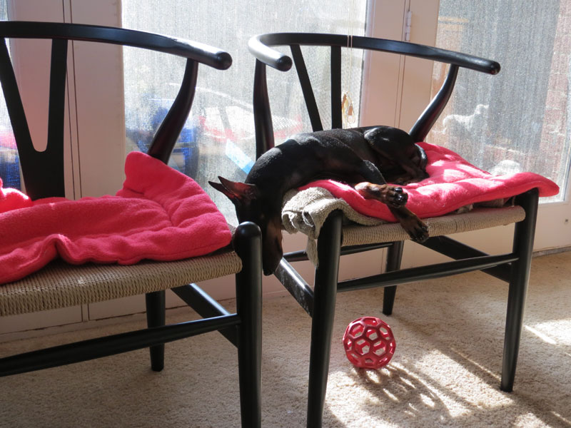 And so she is not left out, I have included the baby of the family in her favorite afternoon sun spot- 2yo BLING also a Manchester Terrier