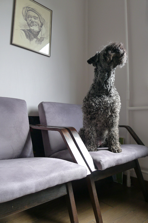 1 – our kerry blue terrier Ojta, sitting on old renovated grandma’s armchair;